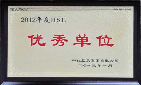 1月28日,经中化蓝天集团公司考核评定,我司荣获中化蓝天集团非高危行业企业2012年度“HSE优秀单位” 称号。