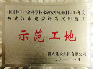 由我司承担的工程管理项目--中国种子生命科学技术研发中心项目 ,经武汉市建委考核评定,荣获安全文明“黄鹤杯”及文明施工“示范工地”荣誉称号。