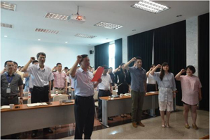 党课开始前,万军同志带领预备党员进行入党宣誓。参加党课的全体党员也一起重温入党誓词。
